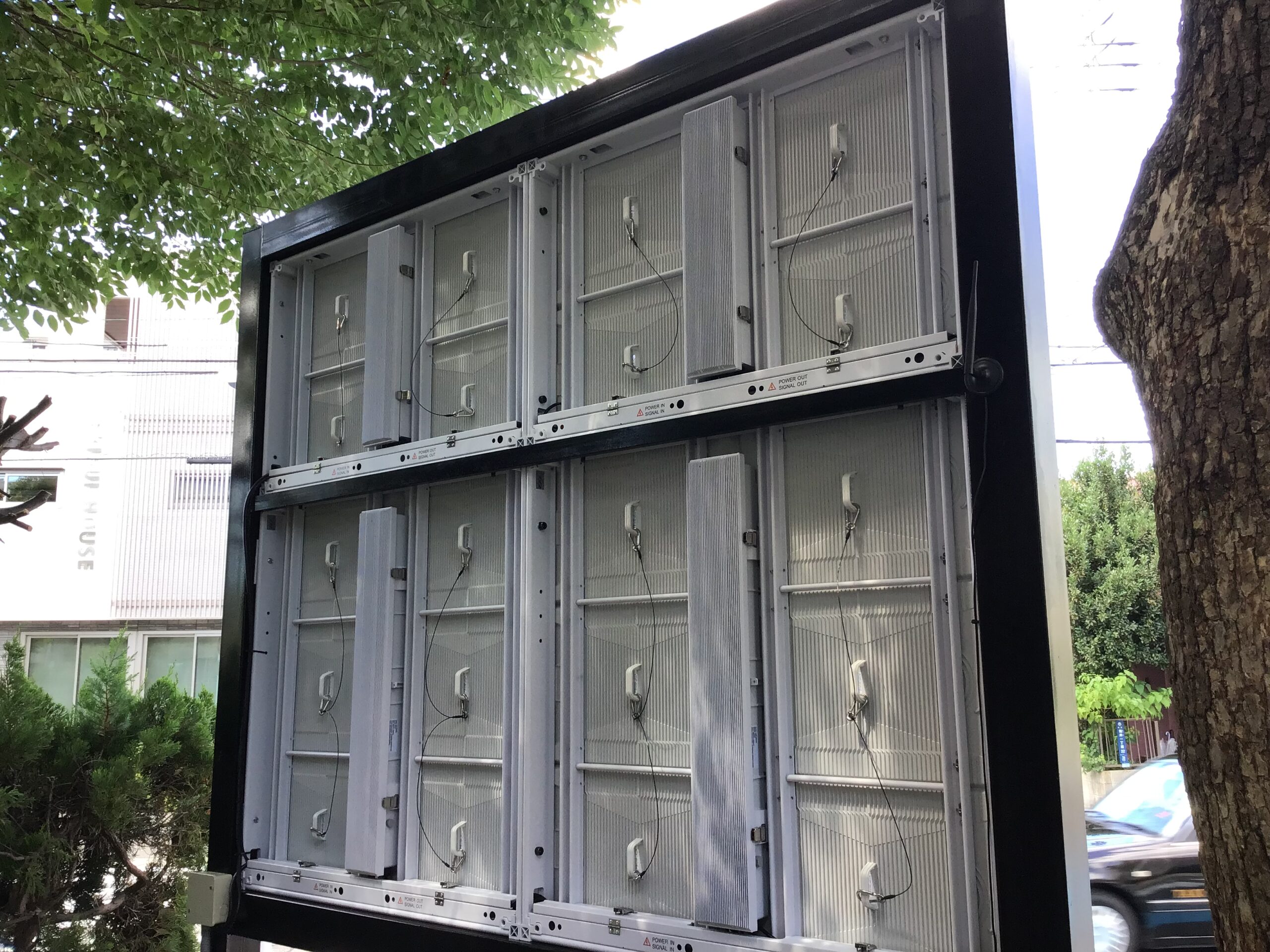 小学校敷地内の交差点付近にデジタルサイネージを設置しました。 「立地的に複合商業施設にも近いためより効果の高い広告媒体を導入したい」というのがデジタルサイネージを導入した主な理由です。 放映動画は、色々な国籍の子ども達の学校での様子を写した写真を使用し、学校の雰囲気が伝わるような動画を制作し放映しております。