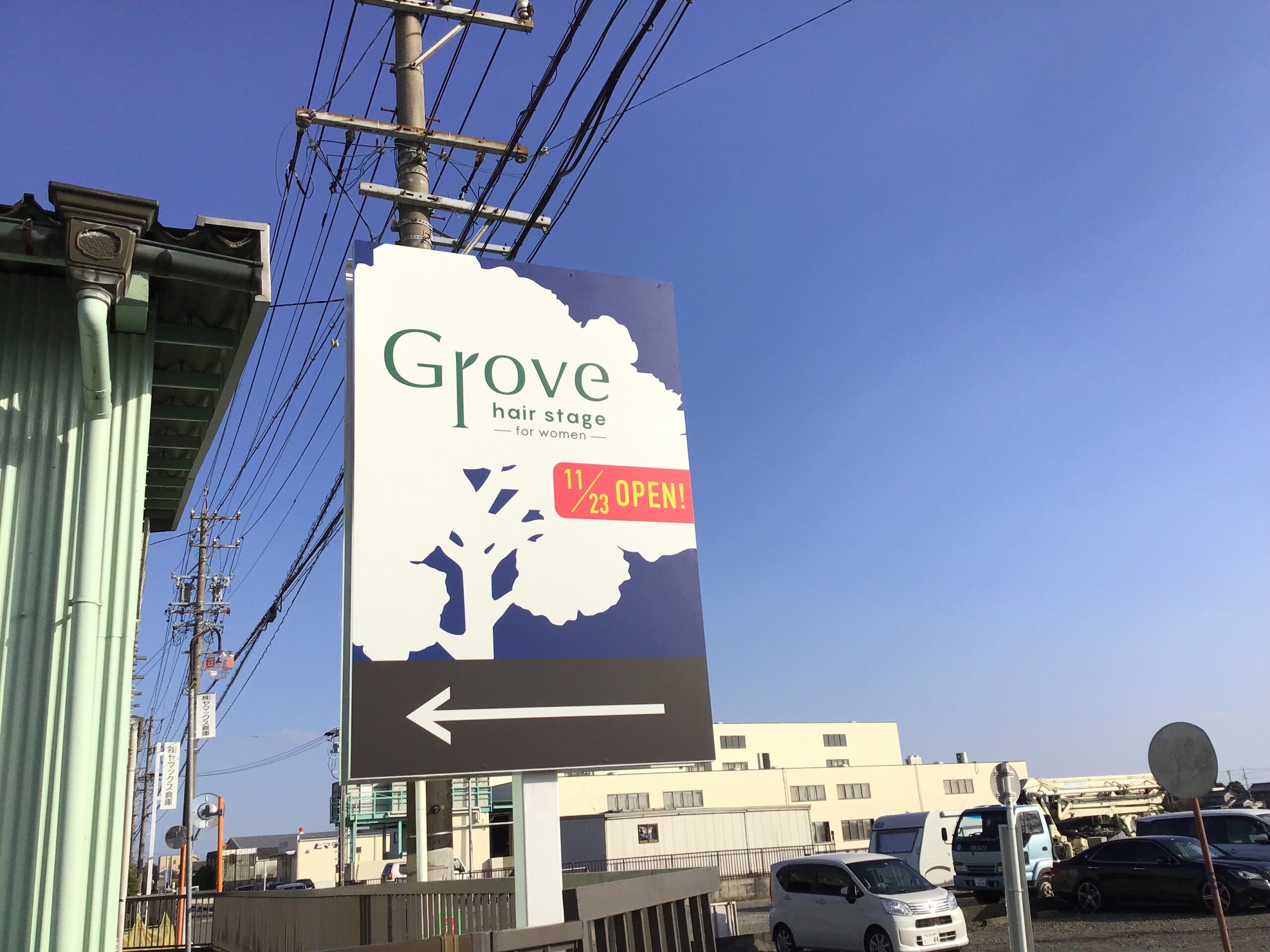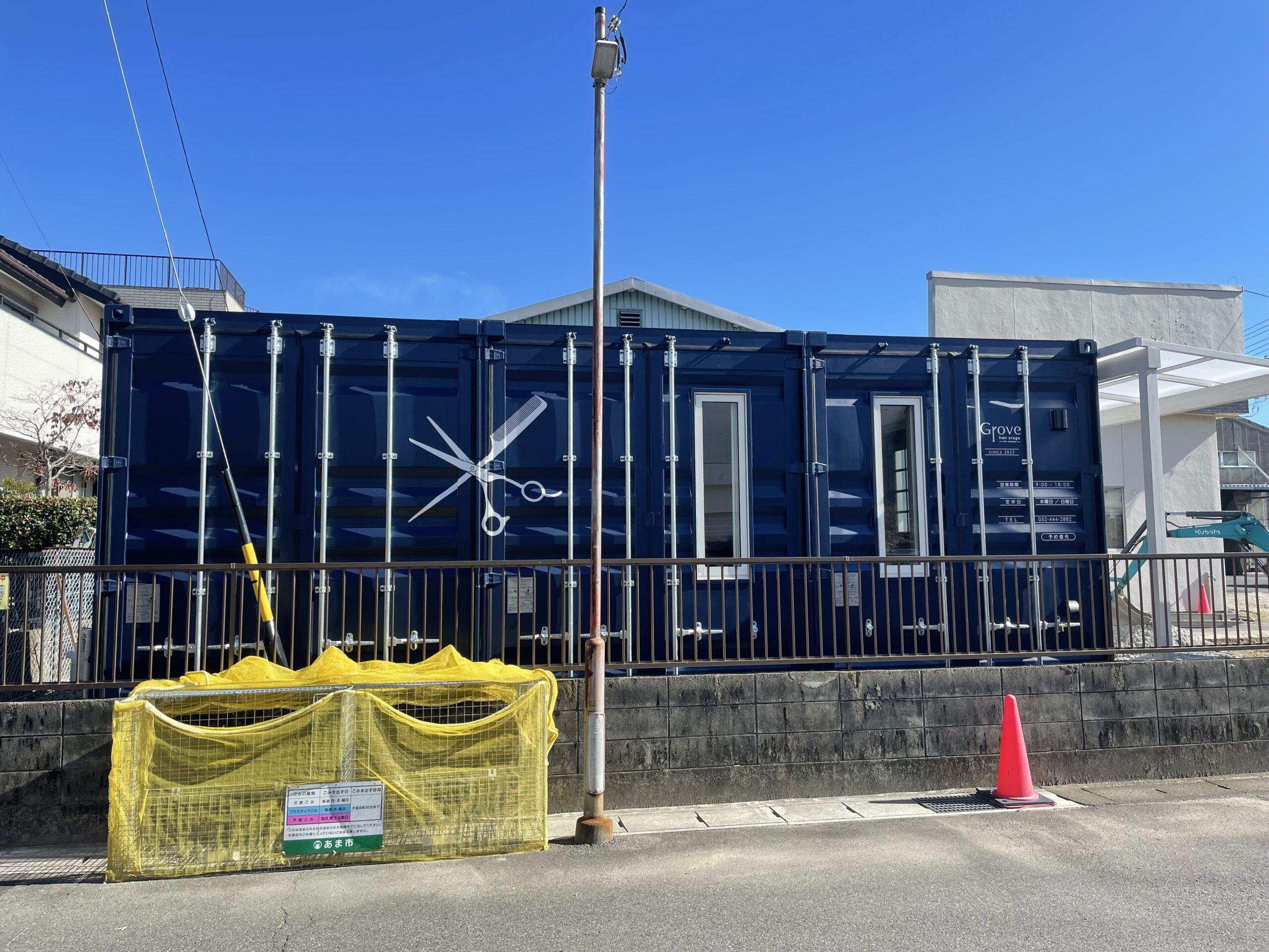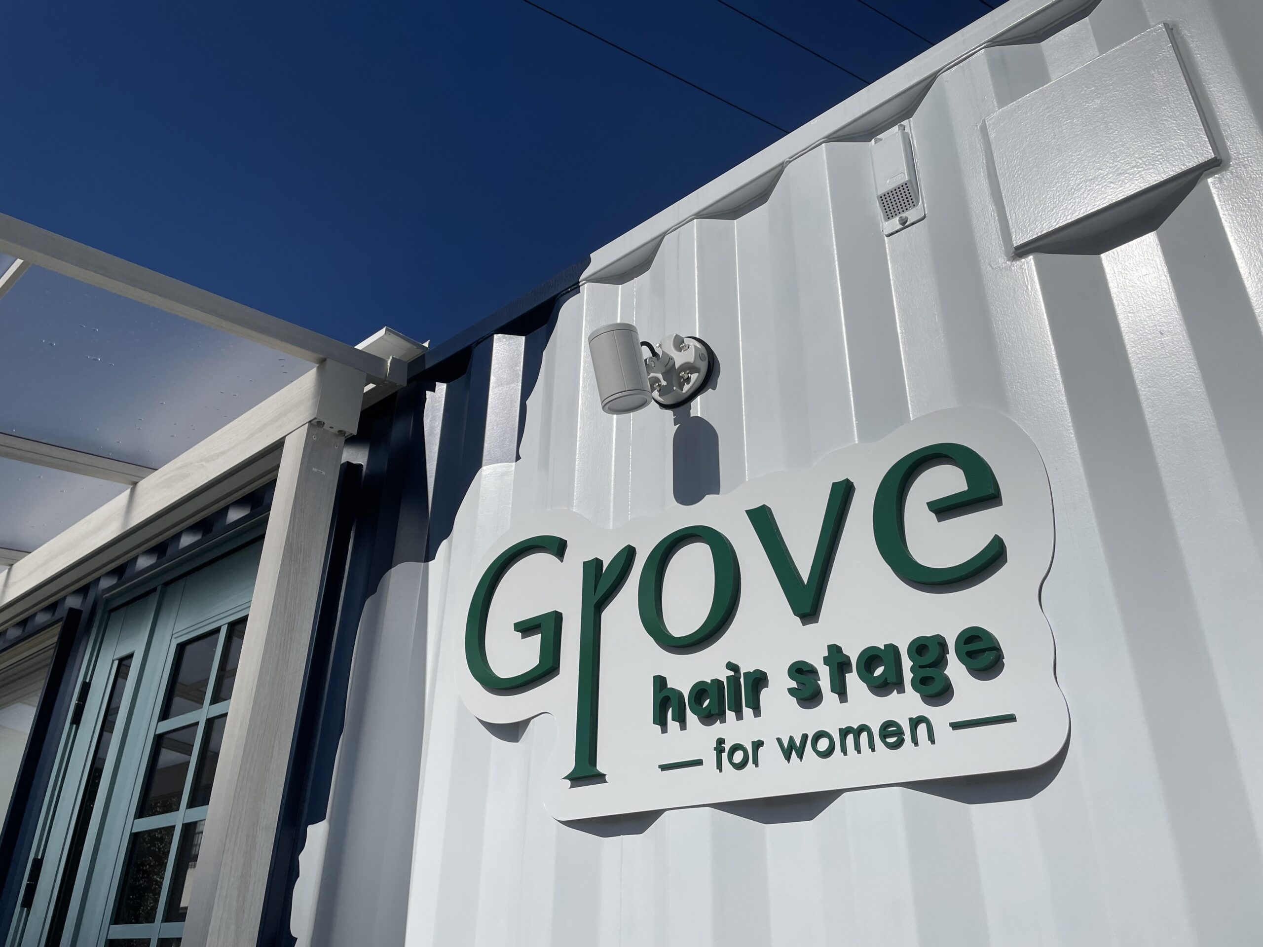 ・コンテナ・敷地内サイン ・デザイン(サインプランニング) ・制作/施工 ・Grove hair stage ・美容院 ・愛知県あま市
