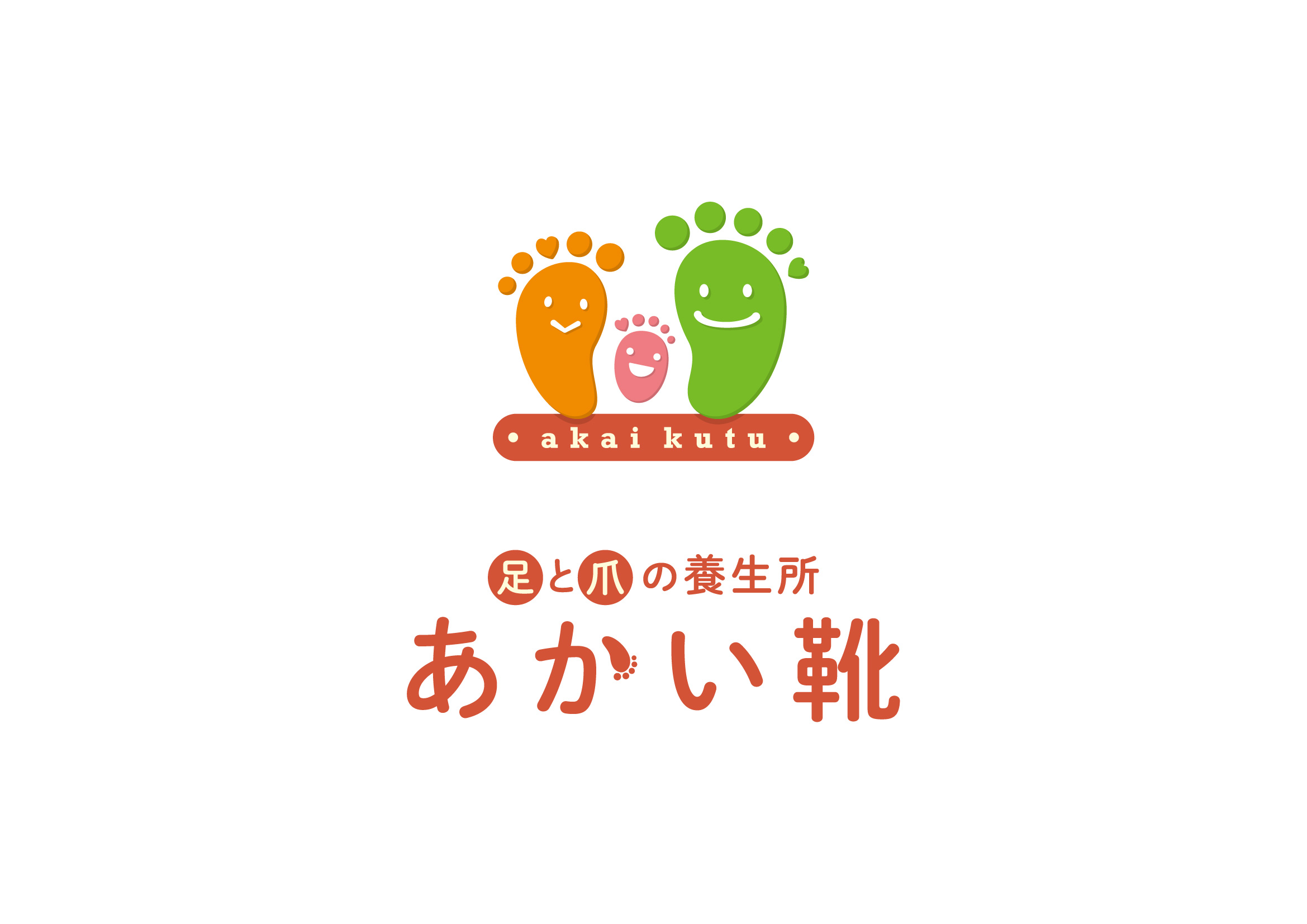 岡崎市にある"足と爪の養生所あかい靴"のロゴデザインを担当しました。 足を3人の家族に見立て、子供から大人まで『末長く自分の足で歩けるように』という思いを込めています。 さらに、『共に働く3人の初期スタッフ』のイメージも取り入れました。 指の内の一本をハートにし、足の先(≒爪)まできめ細やかにケアをする店舗である事を強調しつつ 全体的にはカラフルで可愛らしいデザインとし、老若男女から愛されるロゴになっています。