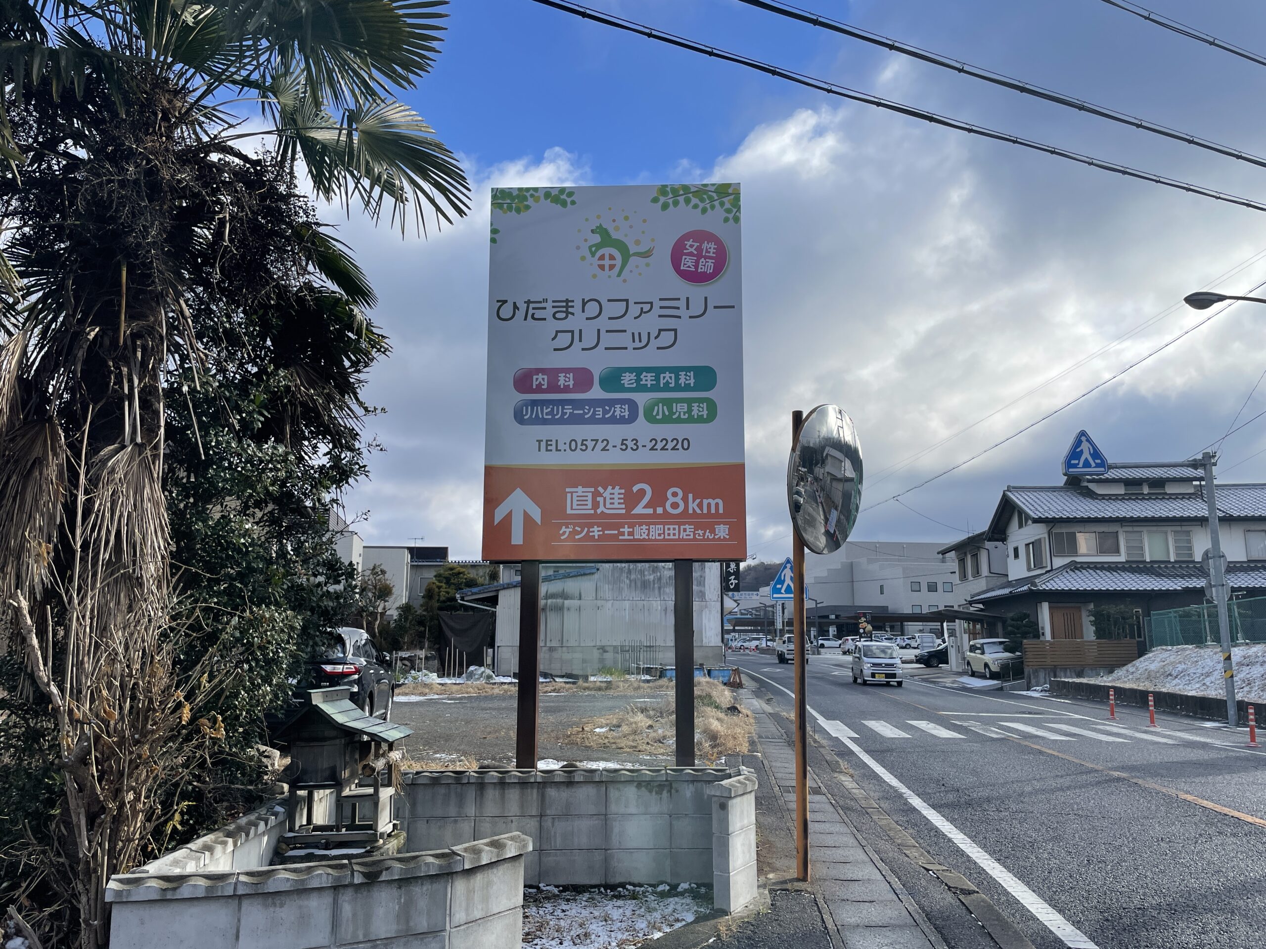 岐阜県土岐市にある「ひだまりファミリークリニック」様の野立看板のデザインに変更を施しました。 前回のデザイン時より、医療レーザー脱⽑やフットケアなどの美容に関する診療も追加になり 再デザインの際に、基本はキープデザインにしつつ、追加インフォメーションを無理なく収めたデザインに仕上げました。 設置場所についても、単独看板で両⽅向から視認できるロードサインですので 地元の方々への宣伝効果のあるのロケーションだと思います。。