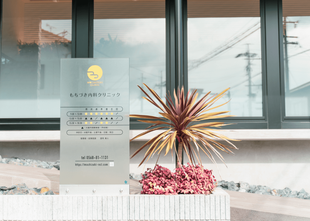 クリニックの建物がホワイトと石調タイルを基調としているため、サインデザインは建物と同調できるようにできるだけシンプルに仕上げています。